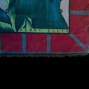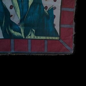 Perry Ellis Large Floral Wool Signed Scarf Vintage