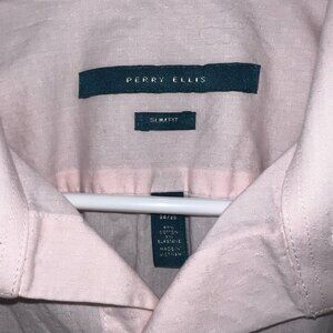 Hashtags: #PerryEllis #DressShirt #Menswear #FormalWear #LightPink