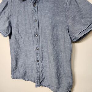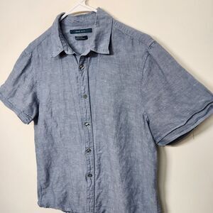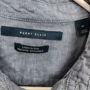 Perry Ellis Linen Blend Short Sleeve Button Down Shirt Men's Medium Blue 1373