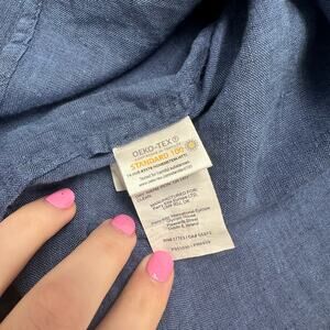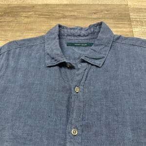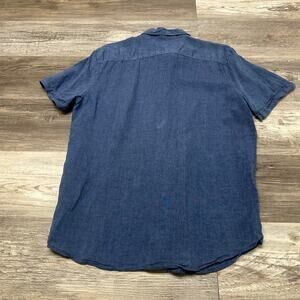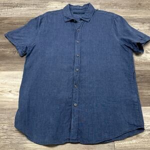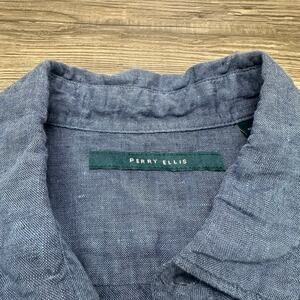 Perry Ellis Linen Blue Mens XL Button Down Short Sleeve Coastal Vacation Shirt