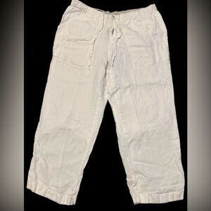 Perry Ellis Linen Women's Drawstring Pants 30/32 White wide leg lining.