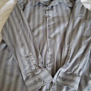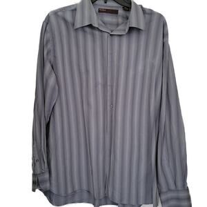 Perry Ellis Men Shirt Size XXL Variegated Blues White Long Sleeve Front Button