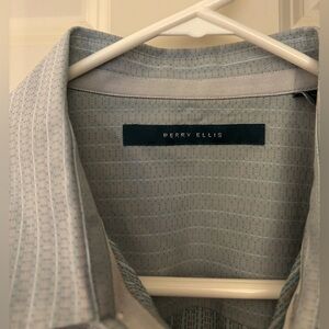 Perry Ellis Men’s 100% Cotton Button Down Long Sleeve Shirt, Blue/Green, Size M