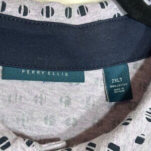 Perry Ellis Mens 2XLT Polo Shirt Lavender/Black Dot Pattern Short Sleeve