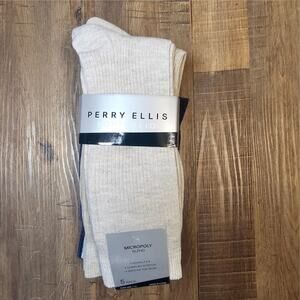 Perry Ellis Men's 5 Pack Ribbed Crew Socks in , Polyester/Spandex, Solid NWT