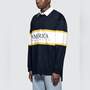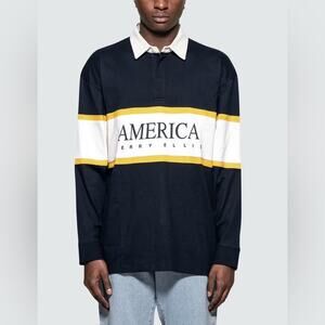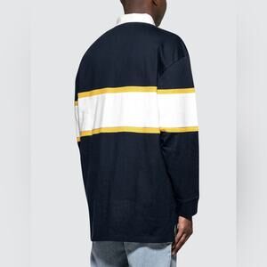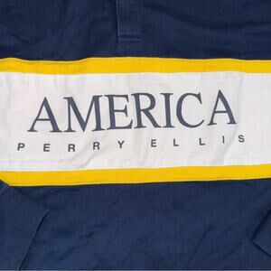 Perry Ellis Men's AMERICA Long Sleeve Rugby Shirt Navy Blue White Yellow Large