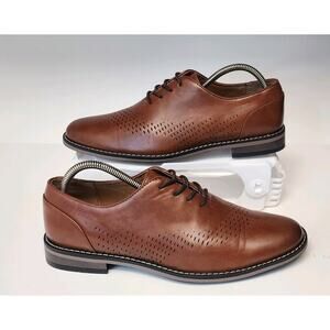 Perry Ellis Men's Bermuda Brown Oxfords Faux Leather Dress Shoes Size 8.