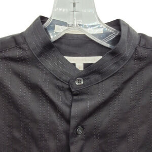 Perry Ellis Men's Black Embroidered Nauru Collar Button Up Dess Shirt