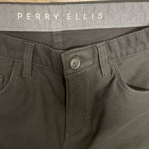 Perry Ellis Mens Black Solid Chino Dress Pants Slim Fit 32x32