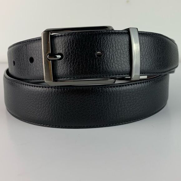 Classic black leather belt for men. Perfect for any occasion.