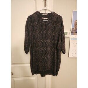 Perry Ellis Men's Brown Print Buttoned Shirt 100% Silk Size XL