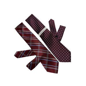 Perry Ellis Mens Classic Tie Burgundy Striped Geometric Print (2) Ties NWT $55