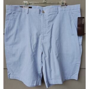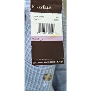Perry Ellis Men's Cotton Bermuda Chino Shorts Blue Gray White Plaid Sz 38 Breeze