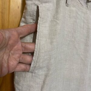 Perry Ellis Men’s Cream Colored Button Fly 100% Linen Pants. 34 X 30. Good pre owned condition. Relaxed, coastal style.