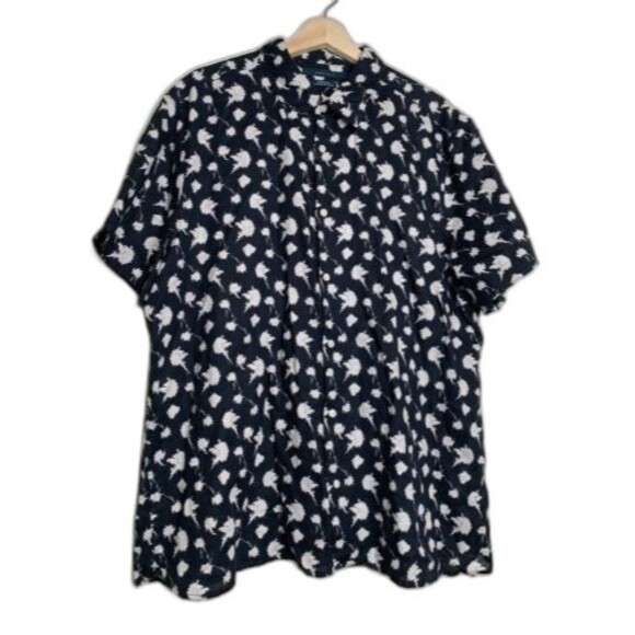 Perry Ellis Men's Dandelion Print Linen Short Sleeve Button-Down Shirt, XXLarge