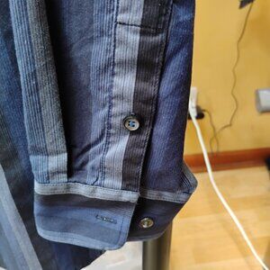 Perry Ellis is a well-known brand that offers a variety of men's dress shirts, including those with stripes. This particular shirt appears to be a classic style with button-down front and long sleeves, suitable for both formal and casual occasions.