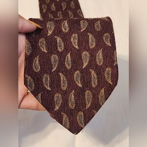 Stylish 100% silk paisley tie by Perry Ellis. Rich brown with gold details.
