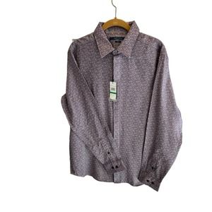 Perry Ellis Men's Purple Print Long Sleeve Fitted Button down Shirt * M - M1310