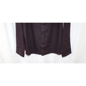 Perry Ellis Men's Dark Red Plaid Long Sleeve Cotton Blend Button Up Shirt. Size L, great condition. 60% cotton, 40% polyester.