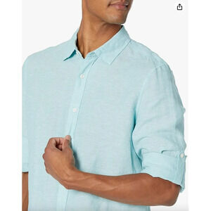 Hey there! I have an amazing deal for you today: a fabulous Perry Ellis Men's Roll Sleeve Linen Cotton Button-Down Shirt Aqua Sea Size in XXL. You'll be thrilled to know that this shirt has been gently loved and is in excellent condition and is completely flawless! Originally priced at $89.50, this shirt is an absolute steal. It's the perfect vacation shirt to pack for your resort. Not only is this shirt lightweight, but it also feels incredibly nice. If you're interested, please feel free to make an offer - I'm definitely open to negotiating! By the way, just thought I'd remind you that we currently have a special 15% discount when you buy three or more items. So, if you're looking to give your wardrobe a fresh new look, don't miss out on this amazing offer! Happy shopping!