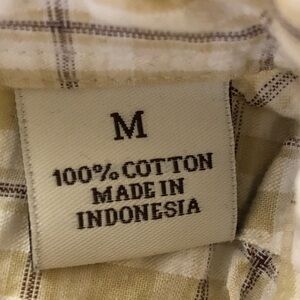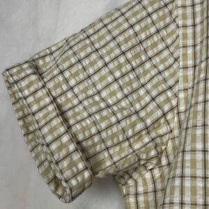 Up for sale is a Perry Ellis men’s short sleeve button down shirt in excellent used condition (EUC). This stylish and comfortable shirt features a classic beige plaid pattern, a button-front closure, and a single chest pocket. Perfect for casual outings, summer wear, or business-casual occasions.