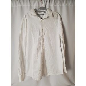 Perry Ellis Mens Size Large Dress Shirt Long Sleeve White 100% Cotton Button Up
