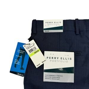 Perry Ellis Mens Slim Fit Stretch Check Dress Pants Dark Sapphire 30x30
