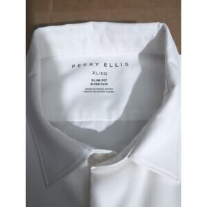 Perry Ellis Men's Slim Fit Stretch Polo, Button Up White L Avant Logo Shirt
