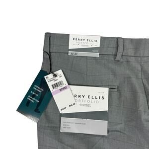 Perry Ellis Mens Slim Fit Tonal Windowpane Dress Pants Gray 32x32