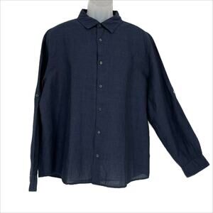 Perry Ellis Men's Untucked Roll Sleeve Linen Shirt in Navy Size XXL