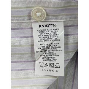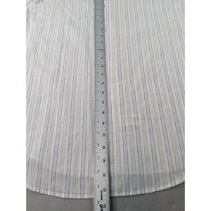 Elevate your style with this Perry Ellis Shirt in size XL. The white striped, long sleeve button-down shirt features a collared neckline and point collar style, making it perfect for any occasion, whether it be a party, casual outing or business meeting. The colorful and classic theme is accented with buttons, making it easy to care for and comfortable to wear. This shirt is made of cotton knit fabric, machine washable and has a chest size of 49 inches. It's a great addition to any wardrobe and perfect for the summer, fall or spring seasons.