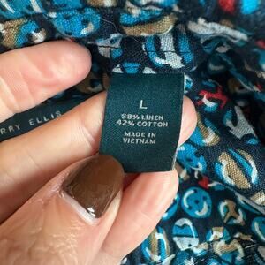 Perry Ellis Multicolored, Short Sleeve, Linen, Casual Button Down- L