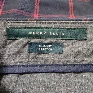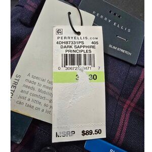 Perry Ellis NWT Windowpane Slim Fit Stretch Pants In Dark Sapphire Sz 30x30