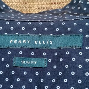 Perry Ellis Navy Casual Slim Fit Button Down Shirt