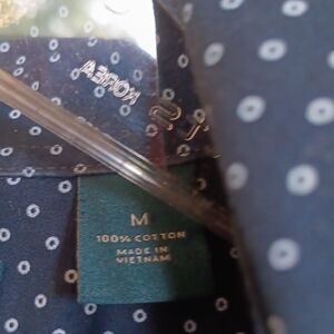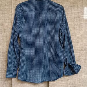 Navy shirt with geometric pattern. Button-down style. Ideal for casual wear.