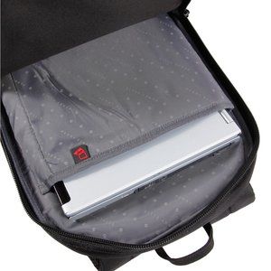 The Perry Ellis business laptop backpack is perfect for work or on any business trip. The padded laptop compartment can fit most 15" laptops and the multiple compartments and pockets provide plenty of storage space.