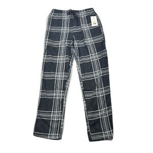 Perry Ellis Pajama Pants Mens Medium Jet Black Chevron Plaid Textured Fleece