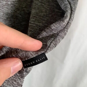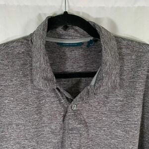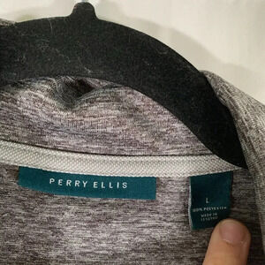 Perry Ellis Polo Shirt Men's Large Grey Short Sleeve 1/4 Button Collared Polyest