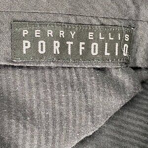 Perry Ellis Portfolio 100% Wool Dress Pants Men's 36 High Rise Black Stripes