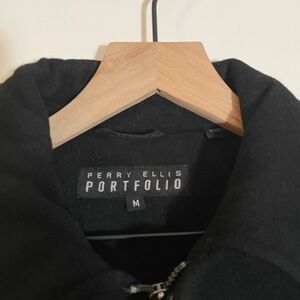 Perry Ellis Portfolio 100% Wool Mens Coat Jacket Size Med Black Quilted Lining