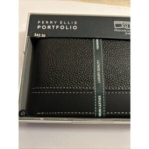 Perry Ellis Portfolio Black Bifold W/removable ID Wallet Sheridan Retails $42.50