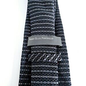 Perry Ellis Portfolio Black & Gray Silk Mens Tie~T174.3