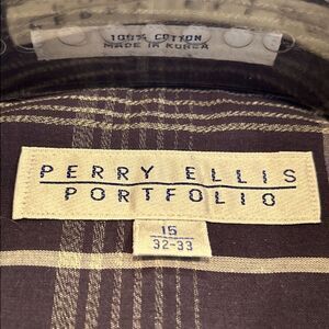 Perry Ellis Portfolio Button Up Blue Plaid Shirt 100% Cotton 15 32/33