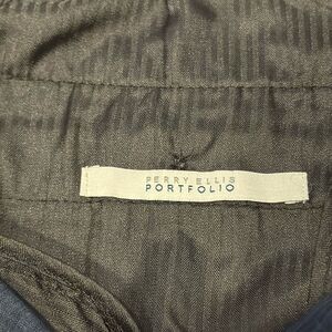Excellent condition Perry Ellis Portfolio very slim fit dark blue plaid flat front dress pants. Polyester, viscose, and elastane blend. Men’s size 30 x 30 but waist measures closer to 31. Measurements taken flat are approximately: