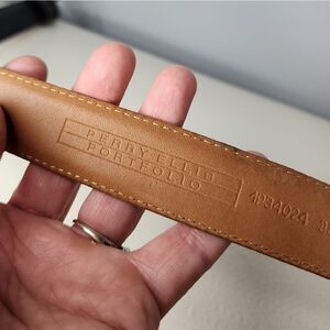 This belt features a buckle closure and is made with metal hardware. It is not vintage and was manufactured in China. The Perry Ellis brand is known for its quality and style, making this belt a great choice for anyone looking to upgrade their accessory collection.
