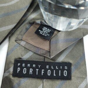 Perry Ellis Portfolio Men Necktie 100% Silk Striped Green Multi 58x3.5 - NWOT