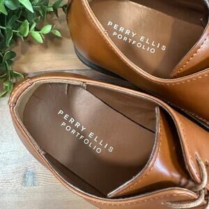 Perry Ellis Portfolio Men's Brown Leather Oxfords Shoes Size 10