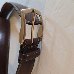 Perry Ellis Portfolio Mens Brown Top Grain leather belt Gold Buckle Sz.XL