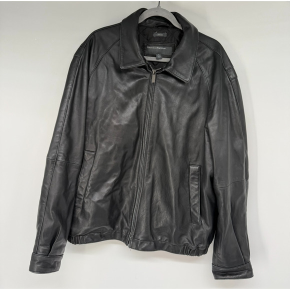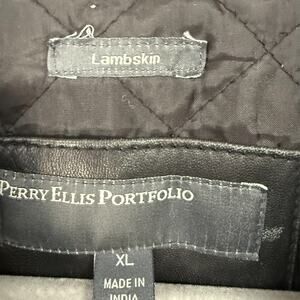 Perry Ellis Portfolio Mens Jacket XL Black Genuine Lambskin Leather Full Zip