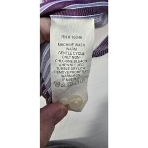 This Perry Ellis Portfolio dress shirt is a stylish addition to any man's wardrobe. The shirt features a pinstripe pattern in a multicolor design, with a button-down collar and long sleeves. It is made from high-quality materials and is available in a size L, perfect for regular-sized men.